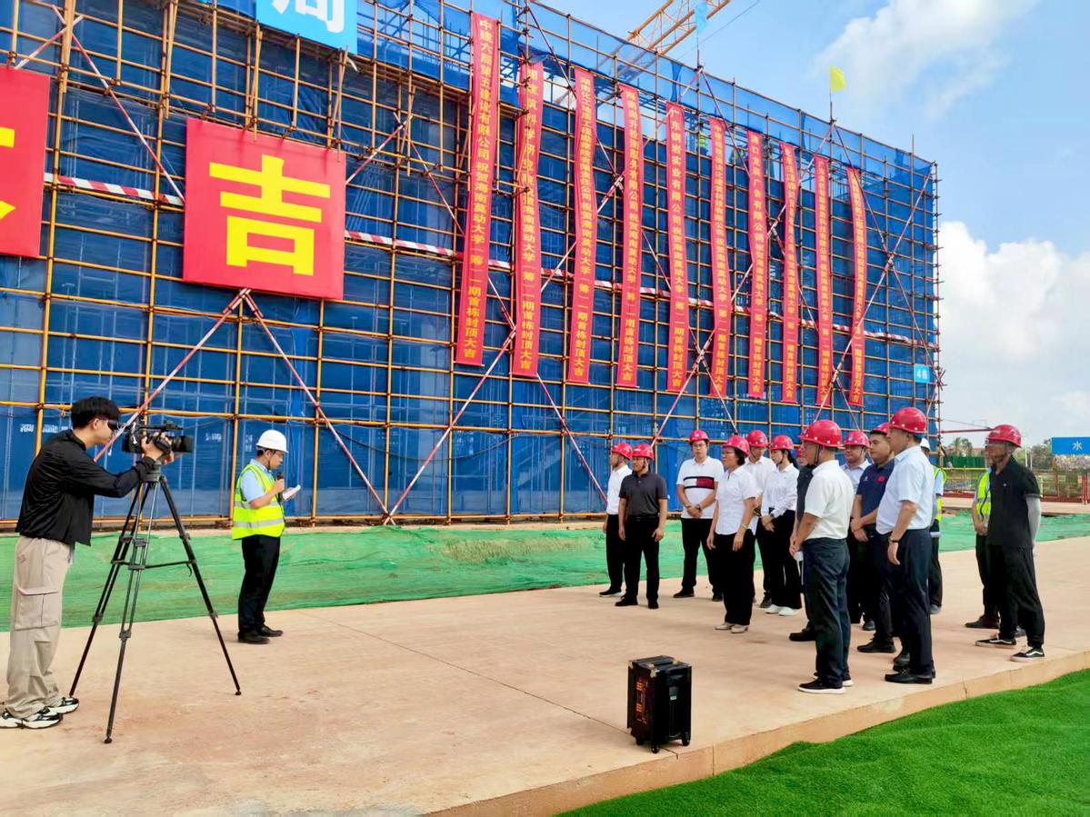 据总承包商中建六局第五建设有限公司海南省总经理胡金国介绍,该项目自2024年5月开工以来,严格按照高标准、高质量要求,组织施工施工进度和安全管理。首栋大楼封顶,标志着校园建设取得阶段性成果,为后续重大项目加快实施奠定了坚实基础。